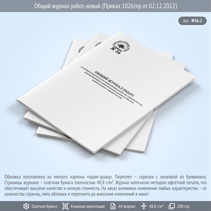 Общий журнал работ, новый (Приказ 1026/пр от 02.12.2022, 200 стр., Ж36.2) в Щёлково купить