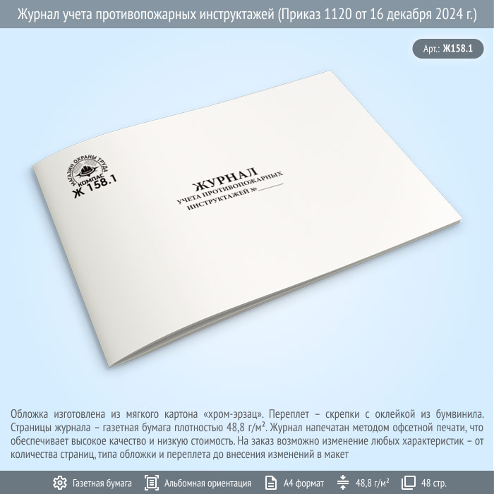 Журнал учета противопожарных инструктажей (Приказ 1120 от 16 декабря 2024 г.) (48 стр., Ж158.1) в Щёлково купить