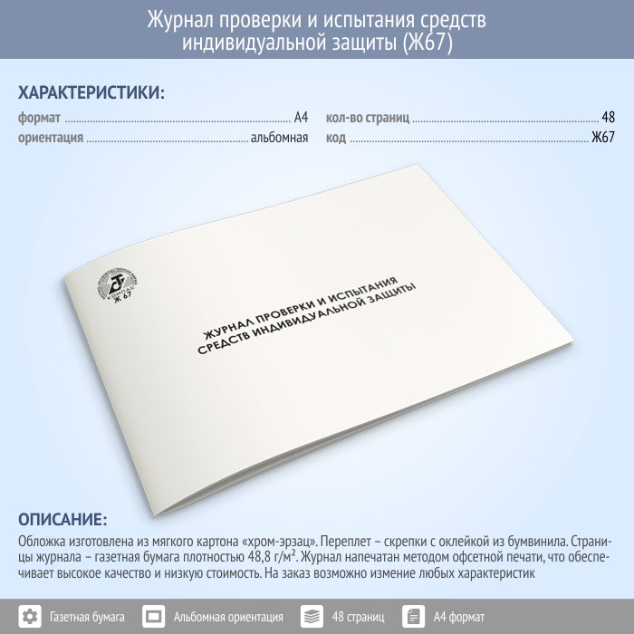 Журнал проверки и испытания средств индивидуальной защиты (48 стр., Ж67) в Щёлково купить