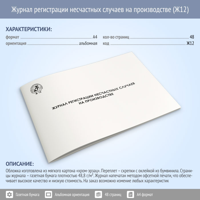Журнал регистрации несчастных случаев на производстве (48 стр., Ж12) в Щёлково купить