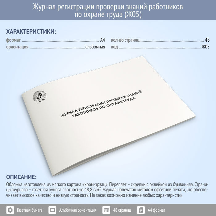 Журнал регистрации проверки знаний работников по охране труда (48 стр., Ж05) в Щёлково купить