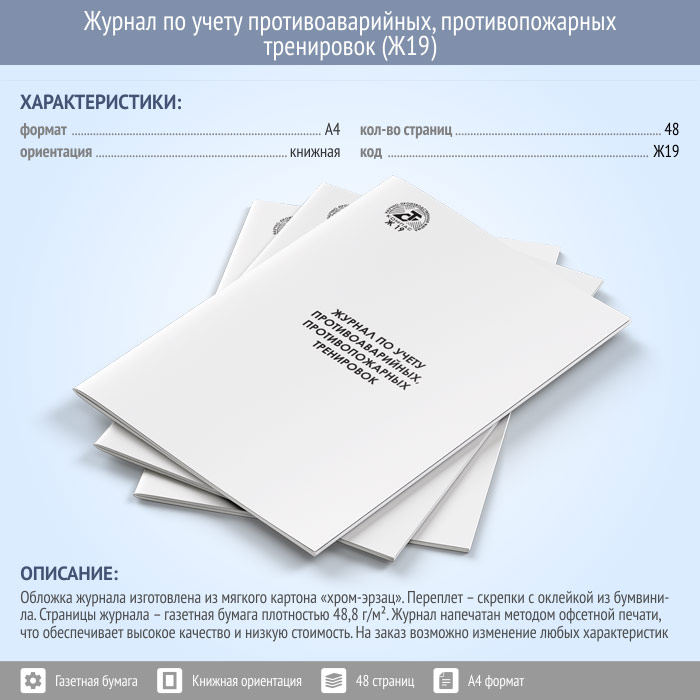 Журнал по учету противоаварийных, противопожарных тренировок (48 стр., Ж19) в Щёлково купить