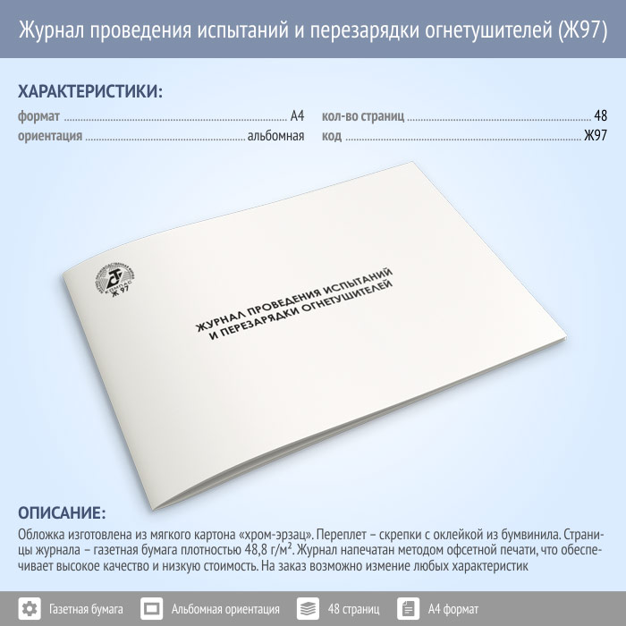 Журнал проведения испытаний и перезарядки огнетушителей (48 стр., Ж97) в Щёлково купить
