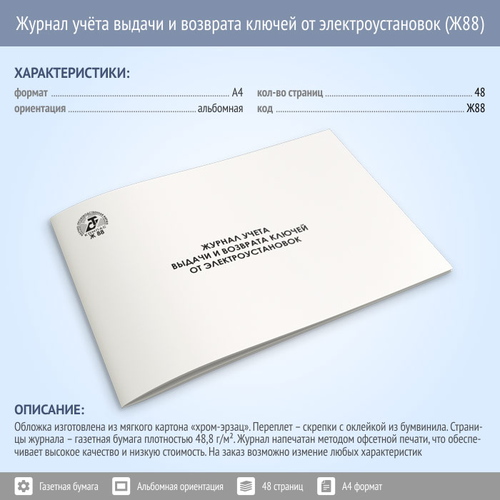 Журнал учета выдачи и возврата ключей от электроустановок (48 стр., Ж88) в Щёлково купить