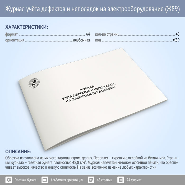 Журнал учета дефектов и неполадок электрооборудования (48 стр., Ж89) в Щёлково купить