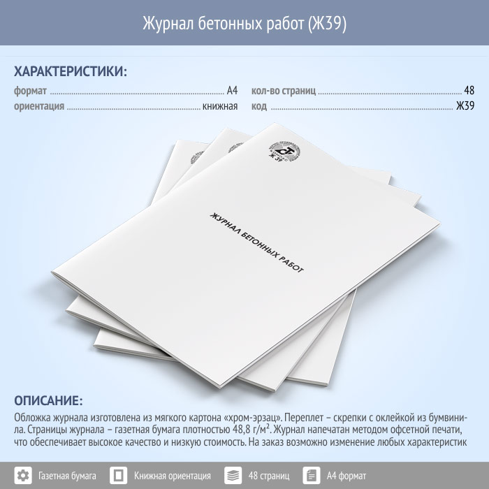 Журнал бетонных работ (48 стр., Ж39) в Щёлково купить