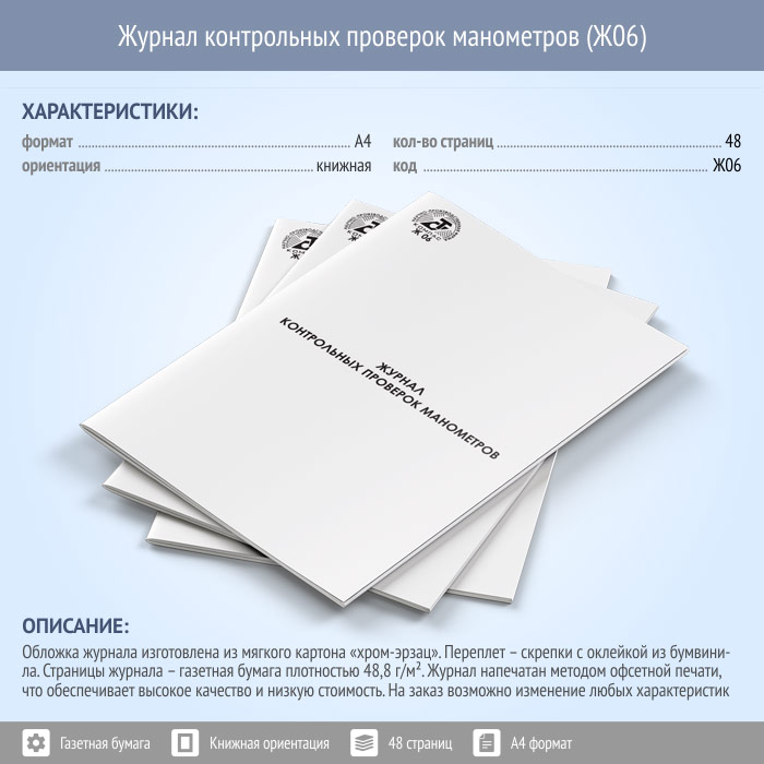 Журнал контрольных проверок манометров (КИП) (48 стр., Ж06) в Щёлково купить