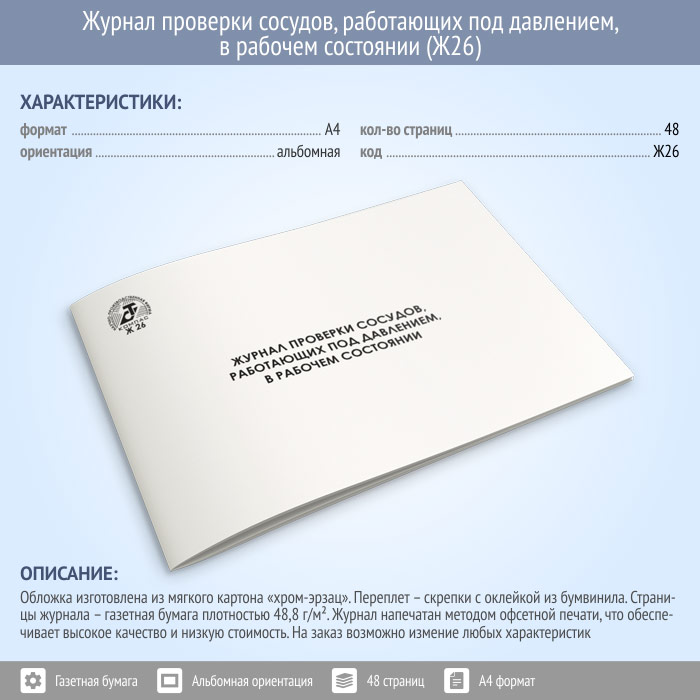 Журнал проверки сосудов, работающих под давлением в рабочем состоянии (48 стр., Ж26) в Щёлково купить