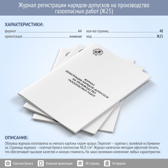 Журнал регистрации нарядов-допусков на производство газоопасных работ (48 стр., Ж25) в Щёлково купить
