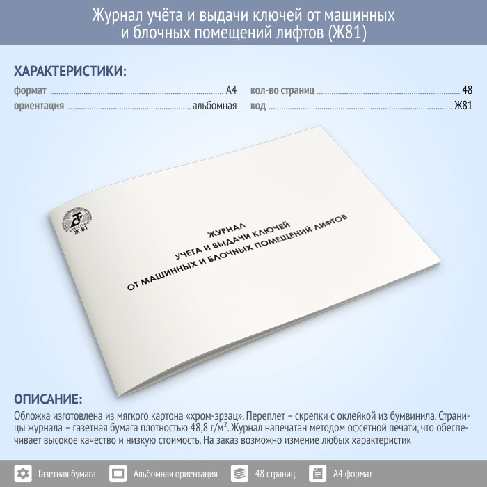 Журнал учета и выдачи ключей от машинных и блочных помещений лифтов (48 стр., Ж81) в Щёлково купить