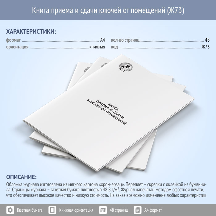 Книга приема и сдачи ключей от помещений (48 стр., Ж73) в Щёлково купить