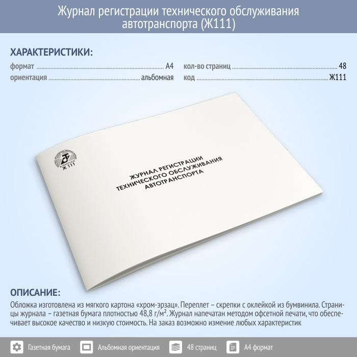 Журнал регистрации технического обслуживания автотранспорта (48 стр., Ж111) в Щёлково купить