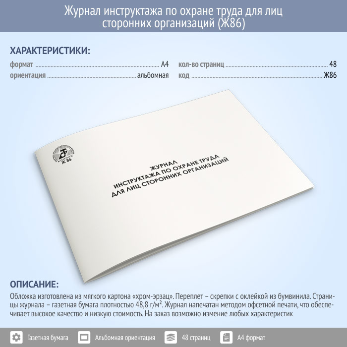 Журнал инструктажа по охране труда для лиц сторонних организаций (48 стр., Ж86) в Щёлково купить