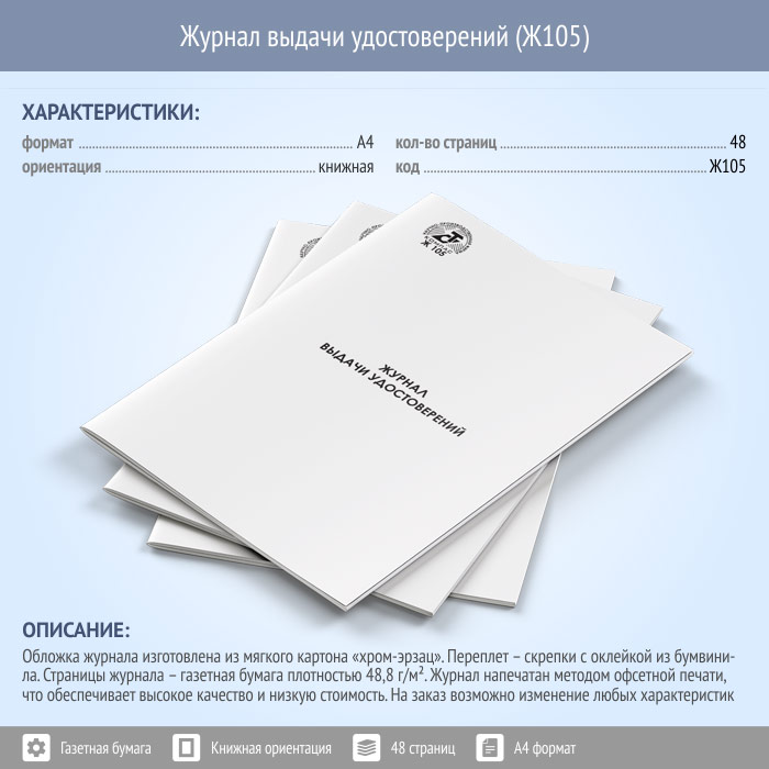 Журнал выдачи удостоверений (48 стр., Ж105) в Щёлково купить