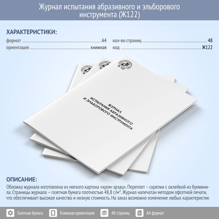 Журнал испытания абразивного и эльборового инструмента (48 стр., Ж122) в Щёлково купить
