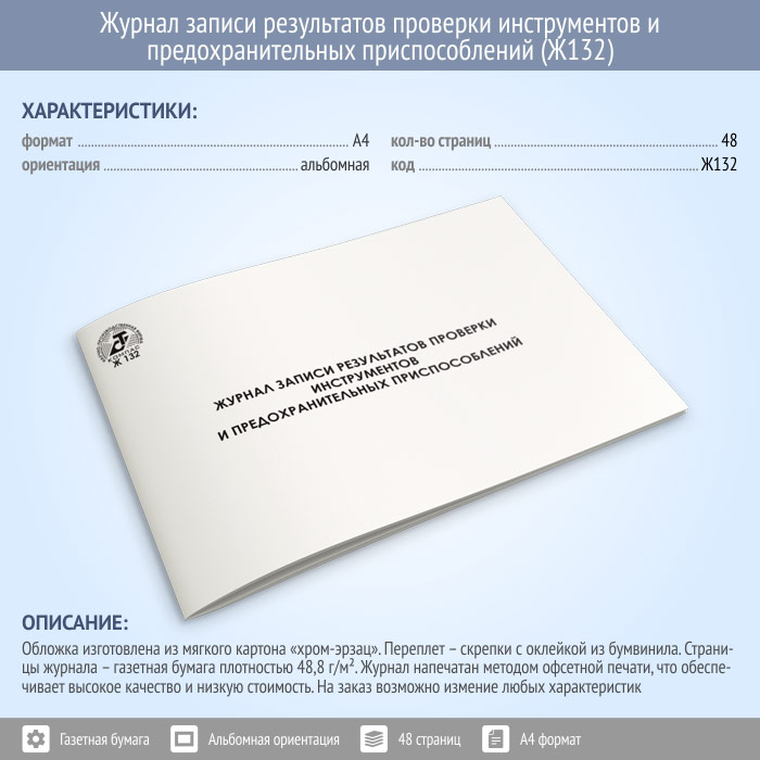 Журнал записи результатов проверки инструментов и предохранительных приспособлений (48 стр., Ж132) в Щёлково купить