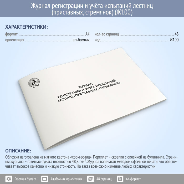 Журнал регистрации и учета испытаний лестниц (приставных, стремянок) (48 стр., Ж100) в Щёлково купить