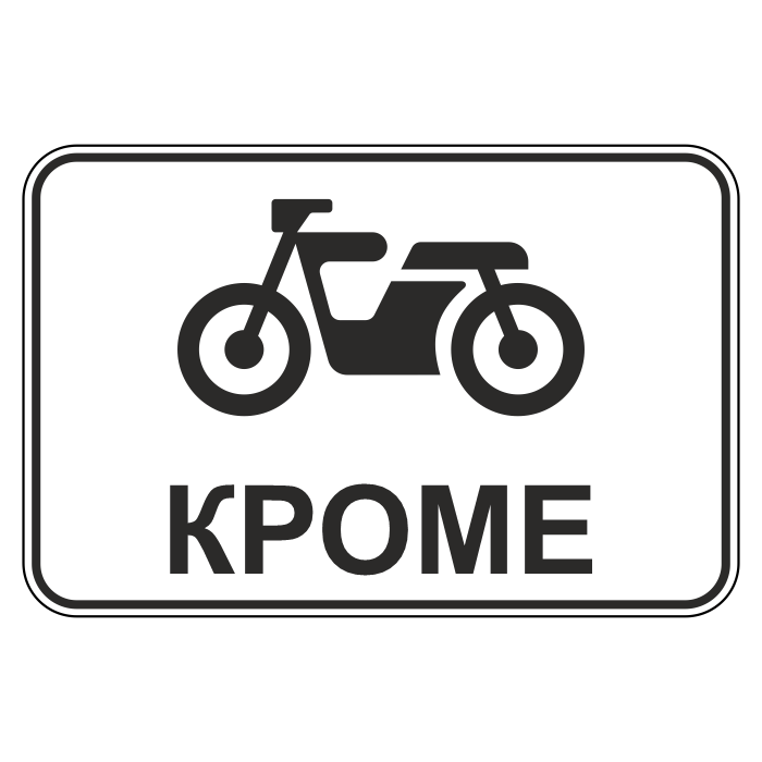 Дорожный знак 8.4.12 «Кроме вида транспортного средства» (металл 0,8 мм, II типоразмер: 470х700 мм, С/О пленка: тип В алмазная) в Щёлково купить